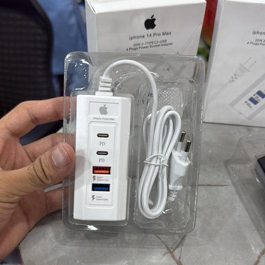 Ultra Compact 4-Port Fast Charger – Dual Type-C + Dual USB | 20W PD Power Hub for iPhone 14/13 Pro Max & All Smart Devices